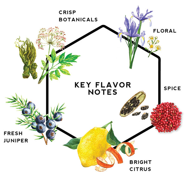 Fruity, citrus, piney, light foral, bright, creamy / silky, pleasant finish